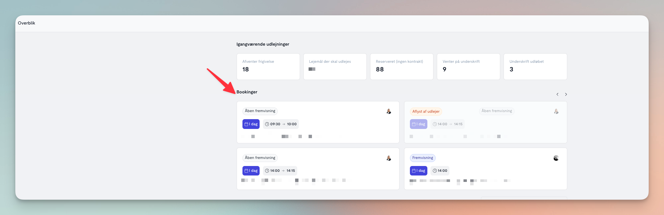 Søgeord: rediger fremvisning, rediger booking, aflys booking, aflys fremvisning, ændre tidspunkt på fremvisning